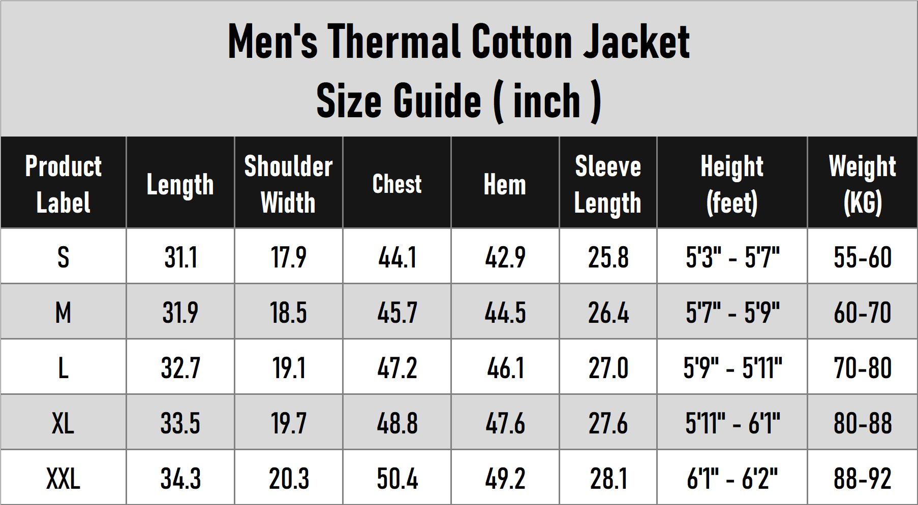 • Machine Washing: Be sure to check the care label on the product for washing instructions. Typically, thermal cotton jackets can be machine washed, but it may require using cold or warm water and avoiding the use of strong bleach.